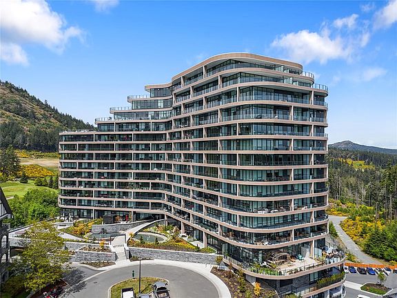 This elegant one-bedroom, one-bathroom luxury condo at the highly desirable One Bear Mountain features one of the building’s most sought-after floor plans and is vacant and turnkey ready. Soaring 10-ft ceilings, floor-to-ceiling windows, and a 205 sqft balcony offer breathtaking mountain views. The modern kitchen boasts Italian cabinetry, quartz countertops, and integrated Bosch appliances. High-end finishes include hardwood flooring, heated bathroom tiles, soft-close cabinetry, and air conditioning. Additional perks include in-suite laundry and a secured parking stall with an EV charger. Residents enjoy premium amenities: an outdoor pool, gym, yoga studio, sky lounge, pet and car wash, and business center. Golf, dining, and trails are just steps away. GST INCLUDED
