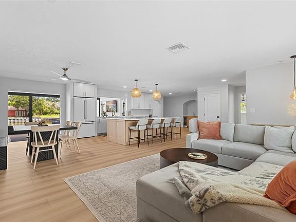 This Venetian Isles waterfront estate provides its buyer the ultimate turkey lifestyle. This home has been fully updated from top to bottom showcasing over $500,000 in fully permitted luxury renovations. Every single room has been fully remodeled featuring brand new fixtures, appliances, vanities, plumbing, accent walls, floors, and upgrades including a new HVAC system, 3 washer & dyer units, new lighting and smart locks. This newly designed open concept space is everything you need to entertain friends and family, while providing upgraded features to elevate your daily living. A custom designed chefs’ kitchen, with attached butler’s pantry and oversized island is a dream come true for a chef, large family, or entertaining space. Every bathroom features custom design with high end fixtures and selections making each room feel like a spa. The master suite has been enhanced to showcase an additional large walk-in closet with private washer and dryer & custom storage. Pool bath was enlarged to make space for guests and events, with a full-size washer and dryer right off the pool & sunroom. Moving outdoors, you can enjoy a fully screened porch with a wood plank ceiling and ceiling fans to stay cool. Plenty of space for large parties and family gatherings or simply watching TV with your family. Sliding doors and windows open to the kitchen and dining room, to tie in both spaces. Enjoy the fully resurfaced pool with new tiles, plumbing and lighting, outdoor shower, lush landscaping, aluminum fencing, irrigation and completely upgraded dock and floating jet ski platform. With the new tile roof, impact rated windows, doors & garage doors, resurfaced garage with storage, this is truly a move in ready home. Located in the heart of Venetian Isles, this home offers direct sailboat access to Tampa Bay with no fixed bridges. You are just minutes from downtown St. Petersburg dining, arts and beaches. This home encompasses modern elegance and true waterfront luxury living.