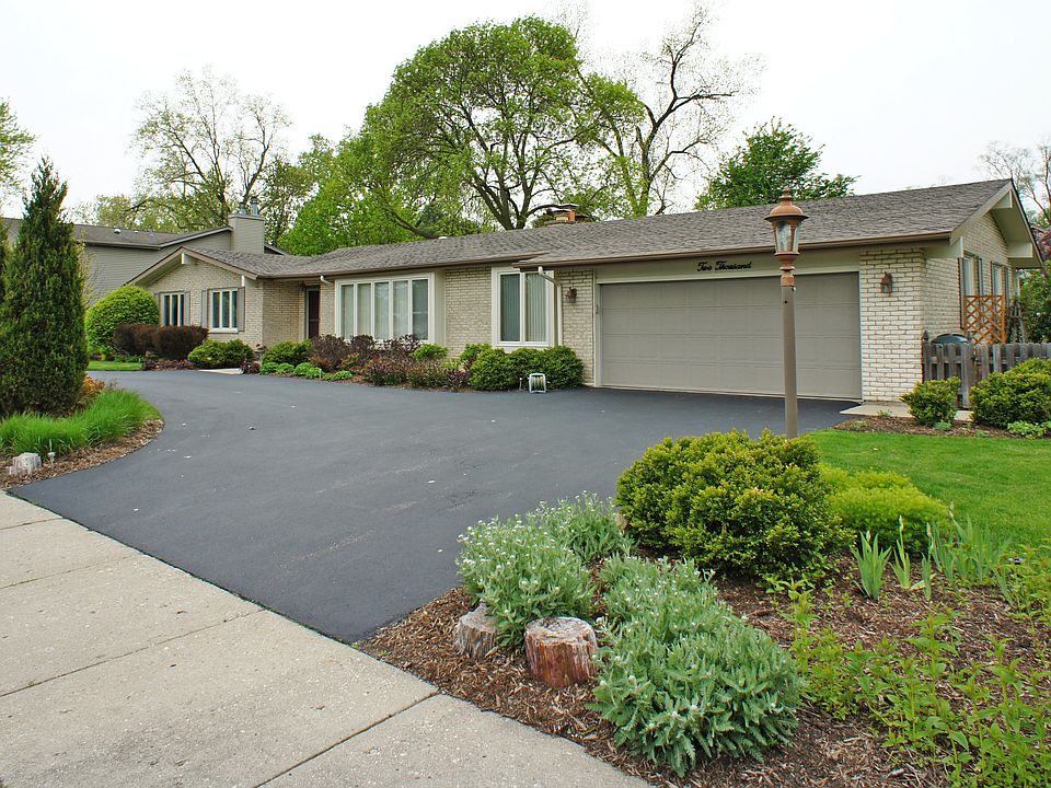 Gorgeous landscaping and circular drive lead to this beautiful and spacious ranch perfect for entertaining! Newer ceramic floor and light fixture in foyer opens to sunken living room with new carpet and large picture window letting the sun shine in. The dining room has new hardwood floors and newer light. Kitchen with a new tiled backsplash, built-in 5 burner cooktop, built-in ovens, under-cabinet lights, triple sink with pull-out faucet, huge pantry closet and planning desk. 1/2 bath with newer vanity, top, faucet, mirror, lights, toilet. Large master bedroom suite with ceiling fan, walk-in closet and sliding glass doors to 2nd patio! Family rm with hardwood floors, stone fireplace and slider to newer patio in fenced yard. Huge basement with rec rm with second fireplace, full bath, office, play rm, tool rm and storage! Award-winning schools! Convenient location near schools, park district, metra, main roads & xpressways, restaurants & shopping.
