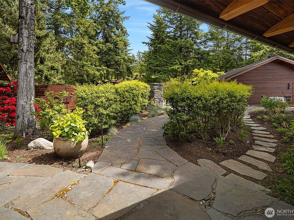 Perched above Haro Strait with panoramic views of Vancouver Island, the Olympics and unforgettable sunsets, this luxurious island retreat blends timeless design with modern comfort. Wrapped in tigerwood decking and siding, the home features a stunning living room with gas fireplace and stone surround, plus a chef's kitchen with high end appliances and artisan cabinetry. 2 elegant waterview primary suites offer spa-like baths with steam showers, soaking tubs, and radiant heat. An office, walk-in pantry, and a separate guest suite with kitchen, woodstove, and steam shower add flexibility and ease. Equipped with a heat pump and AC, water storage, high speed internet, metal roof, 2-car garage, and more. Refined, private, and impeccably crafted!