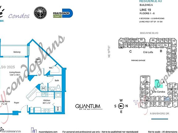 - Total interior livable area: 977 sqft