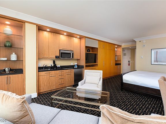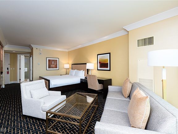Discover refined high-rise living in this elegant residence at Trump Tower Las Vegas. This fully furnished unit showcases floor-to-ceiling windows with captivating city and mountain views, a sleek kitchenette with premium appliances, and a spa-inspired bathroom featuring marble finishes and a deep soaking tub. Impeccably designed for comfort and style, the space offers a seamless blend of luxury and functionality. Residents enjoy access to exceptional amenities, including a resort-style pool, state-of-the-art fitness center, world-class dining, and 24-hour concierge and security. Perfectly located just steps from the Strip, you’re moments away from premier shopping, entertainment, and fine dining. Whether you’re seeking a luxury getaway, investment opportunity, or sophisticated place to call home, this Trump Tower residence delivers unmatched quality and convenience in the heart of Las Vegas.
