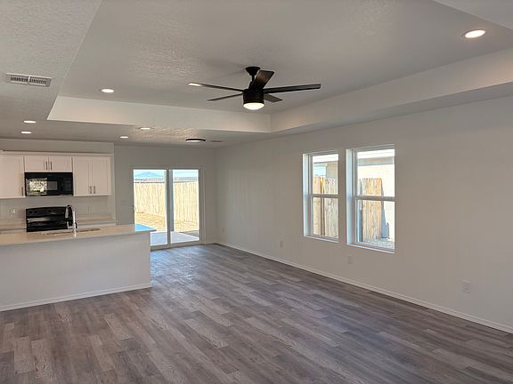 Open entertainment spaceSleek granite countertopsDurable lvp flooringGenerously sized fenced yardBlack appliances