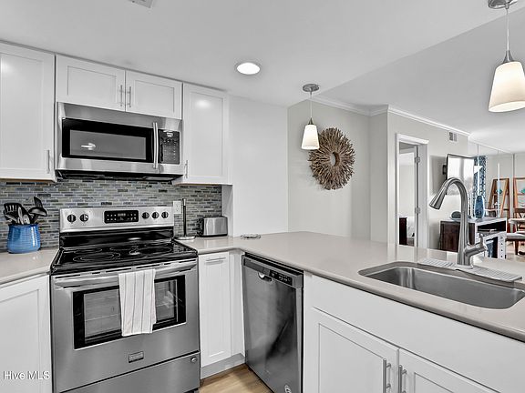 SEASONAL RENTAL. OFF SEASON DATES MAY VARY. Welcome to this stunning 3 bed, 2 bath condo located at the St. Regis Resort in North Topsail Beach. This condo was completely remodeled in the beginning of 2023. Additionally, this beautiful unit now has new upgraded mattresses on all beds, a new washer and dryer, and all new LVP throughout. Other fabulous upgrades include a beverage center and 40-inch smart TVs in all bedrooms. Spend your days on the beautiful sandy beaches, enjoying the slight breeze and gorgeous views of the cabana and pool area and peek-a-boo views of the Atlantic Ocean. At the end of the day, pull out a bottle of wine from the wine cooler and pour yourself a glass before curling up in front of the fireplace with your loved ones. Enjoy the beach chairs and equipment provided with access to the exterior storage space! Walk over the exclusive community beach access and stroll the miles of secluded beaches and glistening blue ocean waters. The beach is calling, don't settle for anything less than everything you need to relax and make special memories with your guests on beautiful Topsail Island. **Brand NEW Saltwater Covered Pool- Open all year round & Heated depending on weather (9 AM-Dusk)** - Outdoor Pool: Open all year round (9 AM-Dusk) - NO pets - Linens NOT included - Contact us for Linen package pricing - Paper products NOT included - Other amenities include a Business Center; Fitness Center with exercise equipment, cardio machines, and a Sauna; Putting green, Pickle Ball/Basketball court; NEW Playground for all the little ones; and Outdoor Charcoal grilling areas for family barbecues.