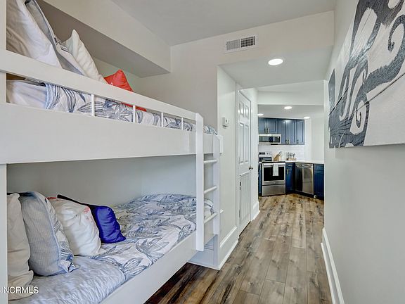 WOW, just wow. Look at this gorgeously remodeled second-floor, end-unit, 1 bedroom/2 bath St. Regis Condo! The bright family room features windows overlooking the peaceful ICWW, as well as a slider that brings the pristine ocean to your couch. St. Regis 2201 features beautiful blue cabinets throughout; bright white quartz countertops in the kitchen, stainless steel appliances, honey-colored COREtec LVP, new lighting, and oversized wall-mounted smart tv's in both the living area and primary. 2201 St. Regis is located in the much-coveted building two, which houses many of the amenities, including the 7th floor feature restaurant and Ice Cream Shop! This chic unit is being sold fully furnished, making it perfectly turn-key! Custom features that may go unnoticed are large decorative baseboards, shiplap, smooth ceilings with recessed lighting, ceiling fan, and specially ordered, hand-painted local décor. Great interior and exterior closets for all of your beach toys, bikes, and coolers. St. Regis 2201 is a very successful vacation rental with SeaShore Realty Group, rental history to be provided upon request. The St. Regis community truly captures the essence of resort living with amenities such as an outdoor pool, private beach accesses, fitness room, playground, arcade, basketball court, chess, putting green, charcoal grills, two onsite restaurant/bars, cabana bar/eatery and an ice cream shop! This family-friendly community beckons you to spend quality family time. Call to schedule your appointment to see this beauty today! Topsail Island is a short drive from Highway 17, making this remarkable island an easy commute to Wilmington, Jacksonville, and bases.