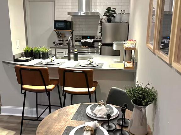 Welcome home to this fully furnished rental in vibrant Plaza Midwood! Located near eclectic dining, shopping, entertainment. An 8 min drive to BofA Stadium, Spectrum Center, and NASCAR Hall of Fame. Cozy and stylish one bedroom condo in a gated community less than a mile from NoDa. Fully renovated condo overlooking a cheerful courtyard setting. Enjoy a queen-sized bed and a full-sized sofa bed. New smooth top electric range with built in air fryer, quartz countertops, breakfast bar, new cabinets, and stainless-steel appliances. Beautifully updated bathroom with modern tile. LVP floors and new windows. LG washer/dryer combo included for your convenience. Community recreation area in courtyard, plenty of open parking in lot. This is a premium courtyard-facing unit on the first level so no stairs to climb. Internet and valet trash service included. Ideally looking for long-term leases of 1 year but will consider shorter mid-term leases of 1-6 months.