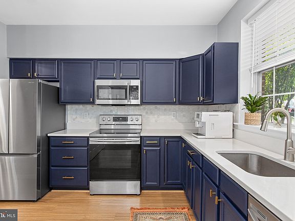 Sleek and spacious modern abode! One level living boasts drool- worthy interiors. Renovated kitchen featuring matched suite of Samsung steel appliances, pale quartz countertops, geometric tile backsplash. Chic, darkly dramatic blue cabinets with gilded hardware - which augments the frisky Sputnik chandelier. Both bathrooms renovated. Entire interior freshly painted in designer neutral palette. Modernist light fixtures throughout. Primary en suite bedroom with multiple closets, designated loo with dual vanities, tiled walk- in shower with glass door. Relax, unwind. Generous second bedroom with two closets. Entire home is reminiscent of a boutique hotel suite. High ceilings, ample natural light. Gas fireplace. Right- sized, luxe living personified. Fully fenced back patio with low maintenance pavers, with opens to green space. Two assigned parking spots, many guest spaces. Central to shopping, dining, BWI, commuter routes (3, 424, 450, 50/301, 97). Easy access to Annapolis, DC, Baltimore regions. Quietly tucked away yet adjacent to two Waugh Chapel destination districts - from Crumbl to Smashing Grapes, Wegmans, Target, ULTA… Live your luxury with an emphasis on ease and convenience. Nothing to do but unpack - this truly turnkey home is a must-see! Most exterior maintenance is covered in condo fee, as is snow removal, grounds upkeep. Amenities include multiple playgrounds, green spaces, swimming pool. iGuide reflects square footage at 1,310. Due to a recent association landscaping project, some hay and grass seed in adjacent green space; this has been color corrected in a few of the photos. No sign on property. OPEN HOUSE Sunday 7/30 from 1 to 3 pm. OFFER DEADLINE 10 am Monday 7/31. Seller reserves the right to act on an offer prior to deadline.