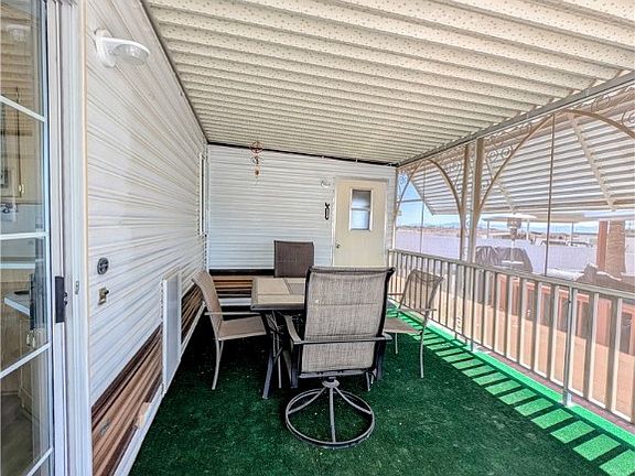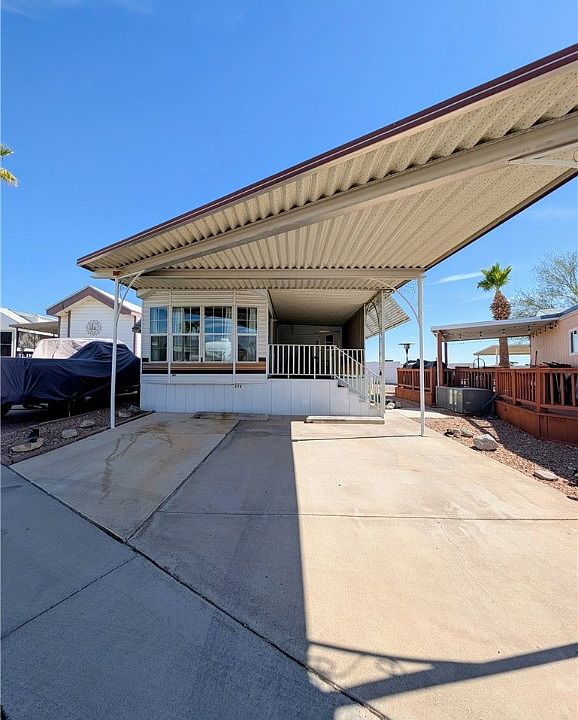 Fabulous home. Covered parking. No one behind you which gives you plenty of privacy. Nice, elevated view from the front of the home. This home is newly renovated with new paint and flooring throughout. There is an oversized laundry room that could be used for an office or separate guest quarters. Large, covered deck and a nice shed set up as a workshop. this home is a real steal. Located in Riverview Resort where you own the land. HOA dues are 325.00 per month and include sewer, trash, water and cable TV. The resort amenities are the best in the county. Located just minutes from the Colorado River and Laughlin Nevada. Gorgeous par 3 executive golf course. Pickleball courts, Tennis courts, indoor shuffleboard, corn hole, billiard room, card/game room, library, craft room, fully equipped gym with showers and saunas, 2 pools, 2 hot tubs, tons of activities including bowling and Off-road groups. A huge ballroom that hosts, bingo, craft sales, dances with live bands and dinners. Come have fun in the sun.
