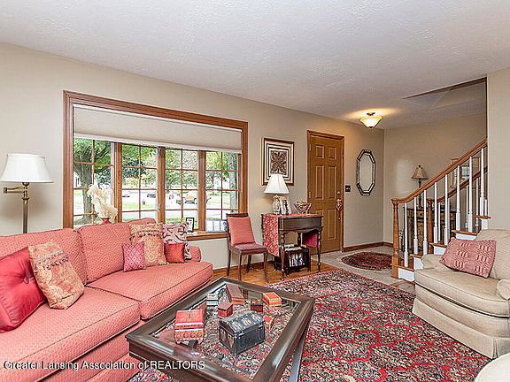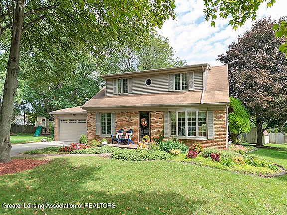 Picture perfect 3 bedroom cape cod in the Tamarisk neighborhood. Just minutes to Pinecrest Elementary, Fine Park, E.L. walking-biking trails, shopping & MSU Close to the CATA Bus line. The winding brick walkway & front porch lend an updated look. Step inside & fall in love Formal living & dining rooms with gleaming hardwood floors, huge front bay window & neutral wall color. Follow the hardwood into the dining room with large windows-rear overlooking the deck and backyard. Unusual maple walled den with built-in wall of shelving, cupboards & desk off the foyer. Perfect place for an office or main floor bedroom. The completely redone kitchen & family room addition are the ''hub'' of the house.