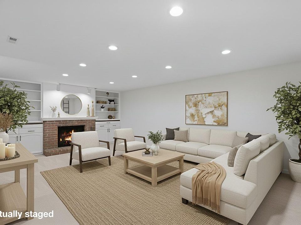 Wood-burning fireplacePrivate fenced yardCustom white cabinetryLandscaped patioPorcelanosa tileQuartz carrara countersStainless steel appliances