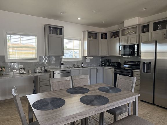 This beautifully maintained 3-bedroom, 2-bath home offers a modern open floor plan complemented by contemporary gray cabinetry. The thoughtfully designed layout places the additional bedrooms separate from the primary suite, providing enhanced privacy. Fully furnished and truly move-in ready, the home showcases attractive finishes and a well-cared-for interior throughout. Located on a premium lot backing to a fence, the property offers added privacy and increased yard usability, with screen doors already installed for added convenience. Priced competitively, this home represents a strong value and is expected to generate significant interest.