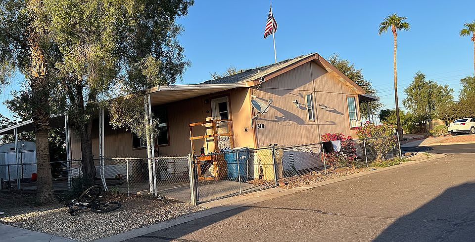 3 bedroom 2 bath mobile home , need some updates (paint, bathrooms ) needs new tile, can be lived in as is. It is in a park the lot rent is $534 a month. Large corner lot beautiful gated quiet family community in buckeye Az, one of the fastest growing cities in the US. Will post pictures later