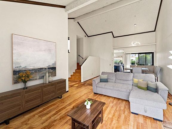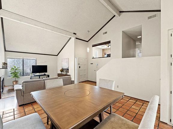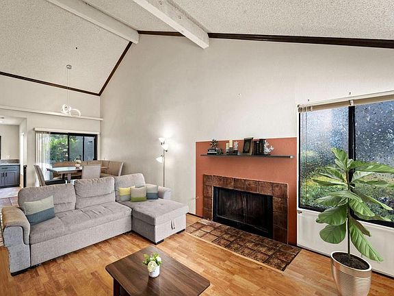 A fabulous opportunity to own an END UNIT condo in the beautiful Spanish themed community of Sunset Woods. With no one above you or below you, two story vaulted ceilings, and over 1,300 SQFT, it feels like a house for the price point of a condo!!! The home exudes comfort - stay cool in the summers with your AC, enjoy your private patio, and get cozy with your gas fireplace in the winters. All three bedrooms are great size while the master bedroom is extra large with vaulted ceilings. You have your own private garage with washer and dryer hookups, and an additional parking space that comes with the unit. The kitchen and master bathroom have just been renovated. Additionally the condo has a full height attic perfect for storage. Bring your paint brushes and make this your home!