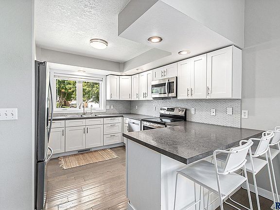 Walk into this move in ready home and be ready to be impressed! As you enter, you will notice the bright, natural light, open living area with soaring 12' ceiling in the living and dining areas with a fireplace to relax next to. On the upper floor you will find 3 bedrooms, 2 bath. The main floor is the living, dining, and kitchen area all with engineered hardwood flooring. The lower level has a family room, a bedroom, and an additional bathroom. The basement is a large rec area with a bar and plenty of open space to make it your own. This area is wired for surround sound and is perfect for entertaining. This home has modern updates with Anderson windows. The yard is fenced in and also has a finished 3 stall garage. Seller is licensed real estate agent.