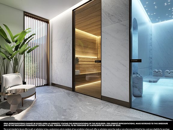 The unit comprises three bedrooms, three bathrooms, a powder room, a private elevator entrance, and fully furnished designer kitchens, and the bathrooms are just some of the exceptional features. The residence has a private terrace to the east, overlooking the ocean, and a private terrace to the west, overlooking the garden, offering residents the opportunity to watch the sunrise over the Atlantic Ocean and its sunset over the Intracoastal Waterway from the comfort of their own homes. Each floor is connected by a common entrance to ease the transition between private and common areas. The idea is to encourage free and natural movement and fluidity from one activity to another.