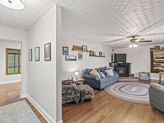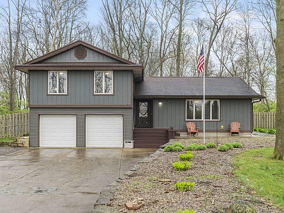 This is the perfect private retreat! This 4 bedroom, 2 full bath tri-level home is tucked away on a scenic 4 acre lot. Upon pulling up, you are greeted by the charming front porch, freshly painted exterior and large outdoor fire pit. Inside you will find updated paint throughout, new LVP flooring (2019) on the main level, as well as new carpeting & padding (2020). The bright living room showcases a cozy gas fireplace (with brand new propane tank and gas line - 2024)! The open kitchen offers SS appliances (range-2023, refrigerator-2019), pantry and an abundance of cabinet/counter space. There is also a designated dining room, and new light fixtures throughout. Upstairs are 4 large bedrooms, including the primary suite; featuring a private attached full bathroom and walk-in closet. The conveniently located full hall bathroom was also recently remodeled (2022). The lower level offers an additional living area with wood burning fireplace, and additional storage shelving (stays with home)! The enclosed, lighted back porch is the perfect place to relax. Outside there is a fully fenced yard with a 6ft privacy fence (2020). There are also three outbuildings: an insulated 20x24 workshop with electric and new gravel driveway, a newly added 12x12 storage shed (2021), and a 22x24 two-story barn. Additional updates/notables include: new metal insulated garage doors (2019), new water heater (2021), crawl space moisture barrier installed (2019) and new water softener (2023). Do not miss your chance on this private oasis!