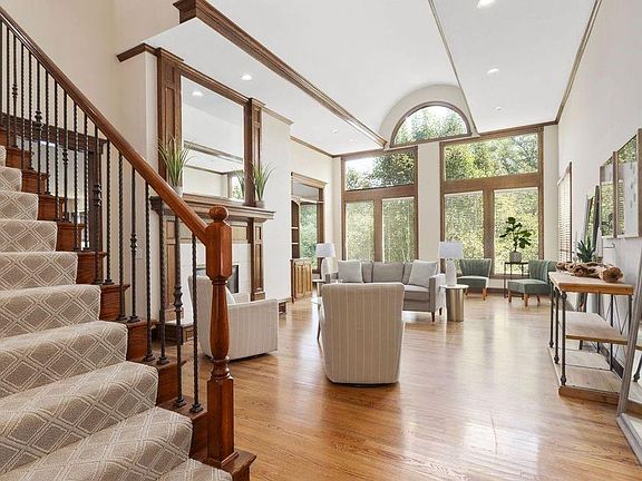 The search is over for a beautiful, 5,500 sq ft 1.5 story home in Winterset Park. The grand entry leads to the living room's tall ceilings and impressive windows (mostly under 10 years old). The vaulted barrel ceiling complements the breathtaking greenspace backdrop. The living room's see-through fireplace is shared with the oversized kitchen hearth. The spacious kitchen has abundant cabinets and a walk-in pantry. Off the kitchen is a screened porch perfect spot to settle in and watch for wildlife as they explore the creek and greenspace of your yard.