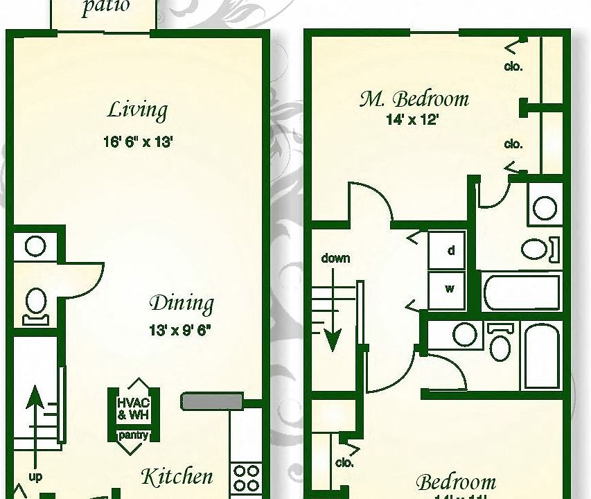 Floor Plan: 2 Bedrooms | 2.5 Bathrooms | 1,182 sq. ft.