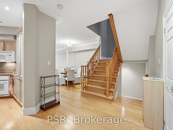 Located In One Of Mississauga's Most Sought-After Pockets, This Spacious 3+1 Bedroom Townhome Backs Onto Mature Woods And Nature Trails, Offering Rare Privacy And A Serene Backdrop. A Welcoming Foyer Opens To A Bright, Open-Concept Main Floor With Hardwood Floors, Crown Moulding, Pot Lights, And A Warm Neutral Palette. The Kitchen Features Natural Quartz Countertops, Built-In Appliances, Wood Cabinetry, And A Skylit Breakfast Area With Walkout To The Patio, Perfect For Morning Coffee Or Evening Barbecues. A Formal Dining Area Flows Into The Sun-Filled Living Room, Where A Three-Sided Natural Gas Fireplace And A Large Bay Window Overlooking The Trees Create A Cozy, Connected Space For Everyday Living And Entertaining. Upstairs, The Oversized Primary Suite Offers A Walk-In Closet And A 5-Piece Ensuite With Vanity, Soaker Tub, While Two Additional Bedrooms Provide Excellent Space And Versatility, Served By A Full Main Bath. The Fully Finishes Basement Extends The Living Area With A Generous Recreation Room, An Additional Bedroom Or Office, And A Full Bathroom. A Double Garage With Inside Entry, Parking For Four Cars, And Low-Maintenance Exterior Care Add Everyday Convenience. This Meticulously Maintained Complex Features Landscaped Grounds, Exterior Lighting, And Ample Visitor Parking, And Is Ideally Situated Minutes From Mississauga Golf & Country Club, Credit Valley Golf & Country Club, Top-Rated Schools, Parks, Shopping, And Scenic Walking Trails, With Easy Access To Highways 403, 407, And The QEW.