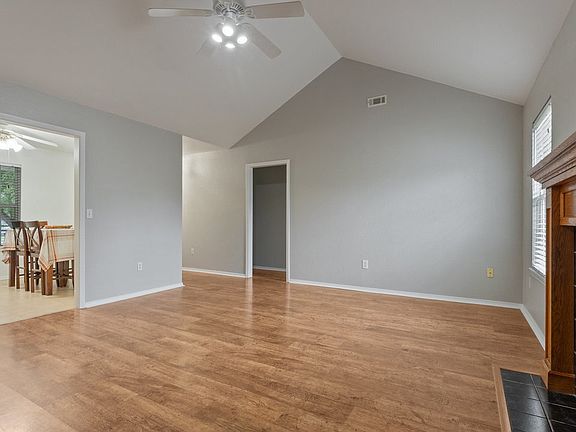 Spacious master bedroomKitchen eating areaFenced yardVaulted ceilingMature treesCovered front porch