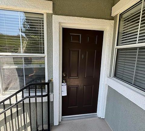 Beautiful Upstairs 2 bedroom, 2 bath home. Gorgeous vinyl flooring throughout. Open, airy floor plan with a large living room with access to the balcony through the slider. Galley styled kitchen with plenty of cabinet space! Stainless steel appliances. 2 spacious bedrooms! Primary bedroom has a large walk in closet and roomy en-suite bathroom. 2nd bedroom is roomy with wall closet. Hall bath is spacious with tub/shower combo. Central A/C. Well maintained gated community with community pool, spa, rec room, and gym! Detached 1 car garage with addition assigned parking. Located minutes away from shopping centers, restaurants, schools and more. Refrigerator, washer and dryer are included. Water and Trash are included.