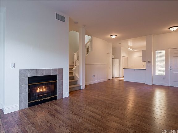 Resort style living at its best with NO MELLO ROOS!!! Largest unit in the private gated community of Bordeaux in Saugus. This attractive property is privately located at the end of a cul-de-sac with no rear neighbors featuring beautiful views of the Santa Clarita Valley. Condo has just been painted in entirety from the walls to the ceilings, baseboards, bedrooms, bathrooms, vanities and even the attached one car garage. Upon entry you will be greeted with high ceilings, laminate wood-like flooring and a desirable open floor plan. Kitchen flows nicely into the living room with cozy fireplace leading out to the private patio. This unique unit features 3 bedrooms, 2 full bathrooms and one half bathroom on the lower level. All spacious bedrooms are located on the upper level with high ceilings and mirrored closet doors. Master bedroom has panoramic mountain views out the windows and large walk in closet. This property also includes convenient indoor washer and dryer which are included with purchase along with the kitchen refrigerator. HOA offers a variety of amenities including: secured gated entrance, pool, spa, water, trash, gym and community room/clubhouse just to name a few! Don't miss out on this one of a kind opportunity!!!