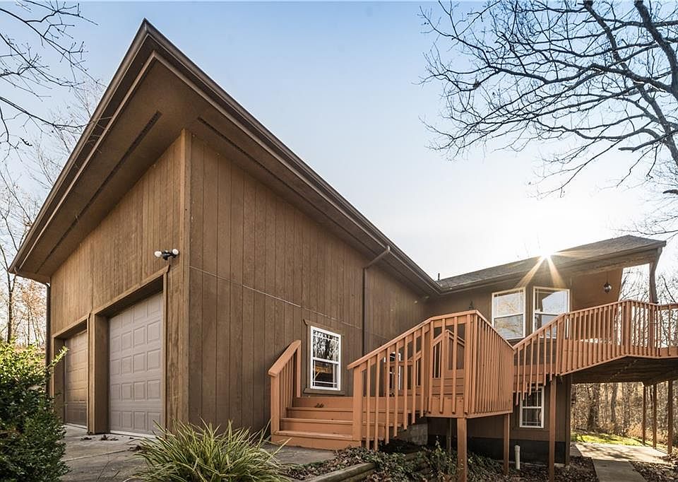 Unique custom built 4 bed 3 bath home on 2.2 acres. Secluded, peaceful, yet just 6 minutes from Walmart on 412. Large deck, maximal windows and high-ceiling living room provide front-row view to oak forest outside. Fireplace, built-in shelves, and lighted niche add tailored touches. Main floor offers 2 bedrooms with walk-in closet and full bath complemented by large loft bedroom and bath. 2-car garage. Extensive built-in storage. Walk-out lower apartment boasts kitchen, bedroom, bath+utilities and 2nd fireplace.