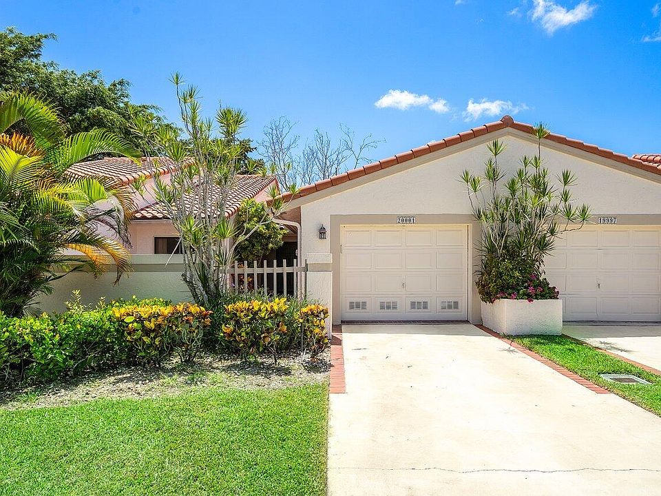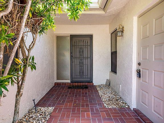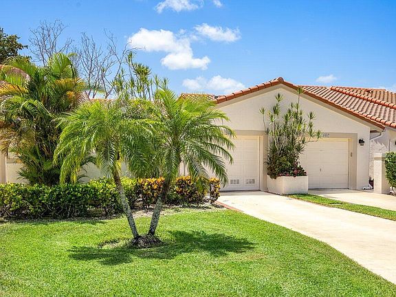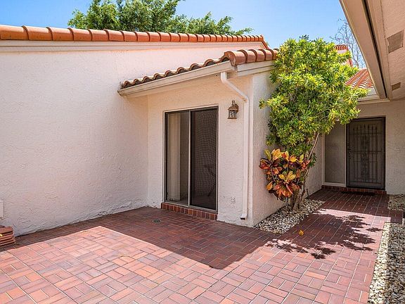 Charming 2 bedroom villa in West Boca's BEST kept secret, BRENTWOOD of BOCA! This villa has a large screened lanai overlooking the beautiful lake as well as lovely courtyard in the front. A split bedroom plan, cathedral ceilings, open concept, and a bonus office space make this home feel larger than it is. UPDATES include: 2021 AC, popcorn removal, new interior paint and new recessed lighting throughout. The one car garage is accessible from the courtyard and houses the updated washer and dryer. Close to shopping, dining, great schools and the new UPTOWN BOCA!