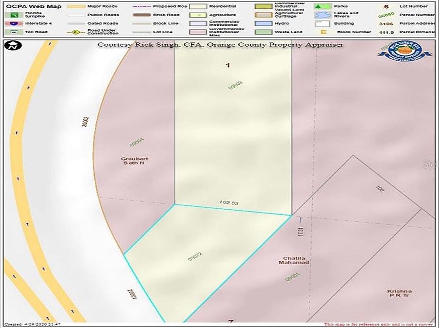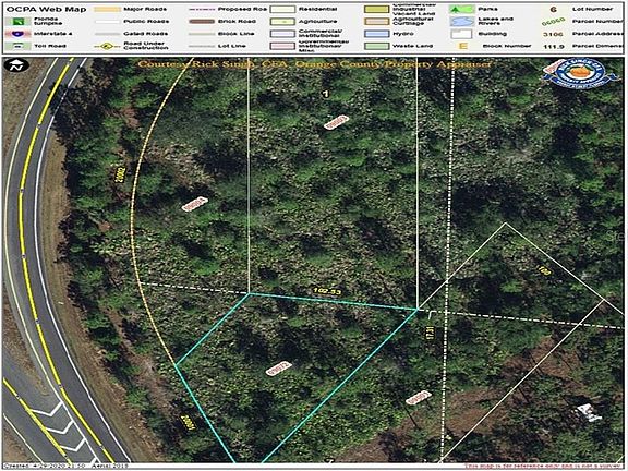 Vacant land with frontage on the access road between 520 west to Hwy 50 east. Adjacent lot is available from the same Seller for a total of 1.20 acres between the two of the most traveled roads in south east Orange County. Right now it is zoned residential, but the location between these two roads could lend itself to a commercial or retail use in the future. When the two parcels are combined they afford direct access between the two highways. Seller would like to sell both parcels at the same time