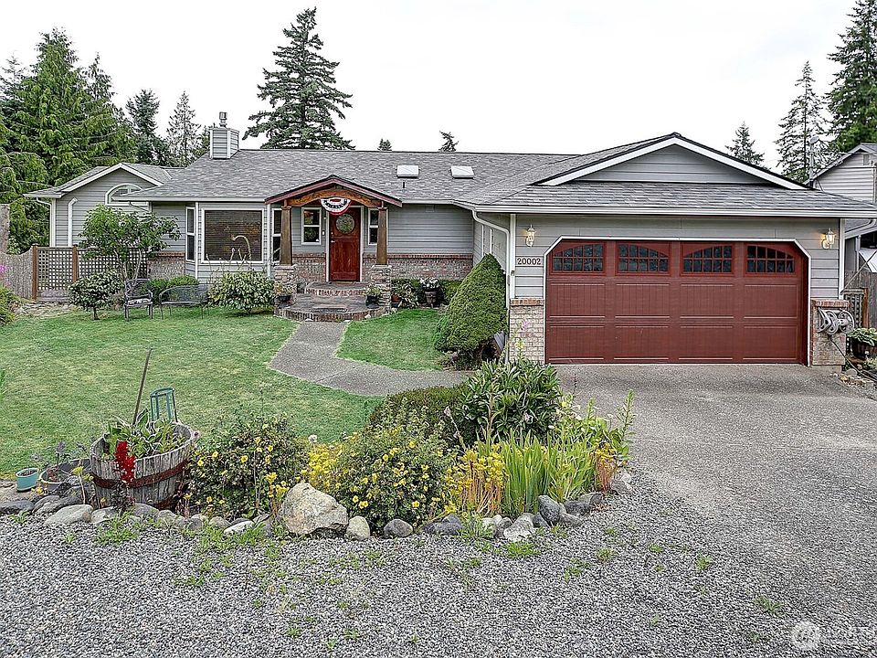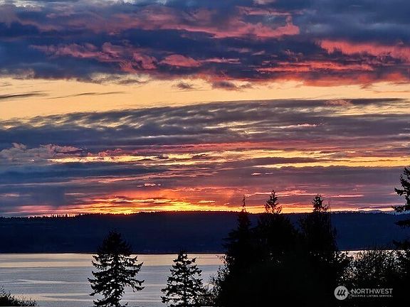 Enjoy the spectacular water and sunset views from this nicely updated rambler on 1.39 acres. Walk through a beautiful portico into your spacious living area with cozy propane stove. Updated kitchen with granite and stainless appliances flows into the dining room and family room. From here look out over the large trex deck, gardens and lawn, and your water view. Primary bedroom with bath and walk in closet opens to the deck and hot tub. 2 additional bedrooms, full bath, and large pantry/laundry room complete this layout. Attached double garage plus a 20x20 shop. Electric start generator stays. New roof just installed. 2 RV Hook-ups with 240 volt/50 amp service. Large dry crawlspace. Ready to go!