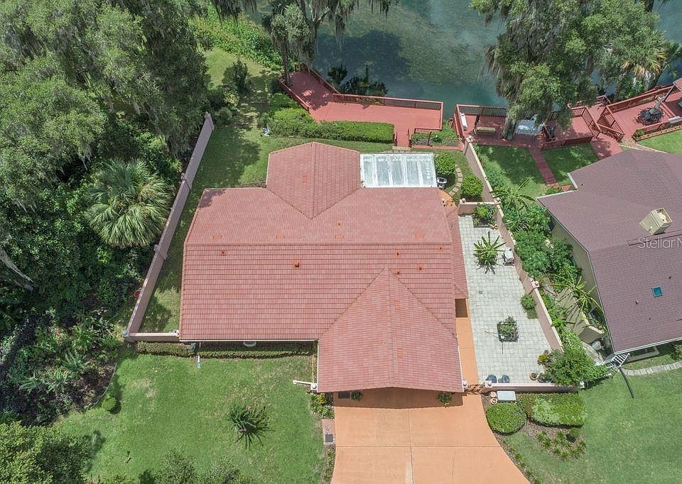 Amazing lake view from this Spanish style home located in the highly sought after Blue Cove Community with a short walking distance to the access to the Rainbow River; Blue Cove HOA is voluntary and only $75 per year that provides a private boat ramp and dock on the river. The house is located on a beautifully landscaped water front property directly overlooking the Blue Cove Lake. The property features: 75’ lake front. Spanish style tile roof; circular driveway; gated entry 47’ x 23’ private court and back yard; sprinkler system; beautifully; gated front entry porch; 3 bedrooms, 2 bathrooms, large kitchen, formal living room, dining room, family room, Florida room with large picture windows to maximized the panoramic view of the lake; tile throughout the house with carpet in bedroom 3; 20’ x 12’ vinyl window enclosed lanai; new A/C 2021; new W.H. 2016; new tile roof 2015. Window treatments. Enjoy the crystal clear waters of the Rainbow River for all your favorite water activities and you can also take a boat ride to waterfront restaurants on the Withlacoochee and the Rainbow River or just enjoy from your own place the peaceful waters of the Blue Cove Lake, excellent for fishing, kayak, canoeing, or just entertain yourself watching the wild life the lake attracts during all of the seasons of the year from the inside of the house or from the two level decks outside under the cool shade of the oak trees. This is a must see home and property to appreciate all of the special beauty and bonus that goes with it. (no gasoline motors allowed on the lake).