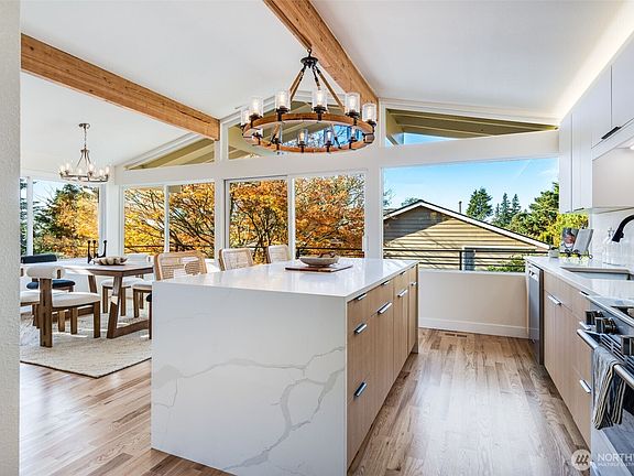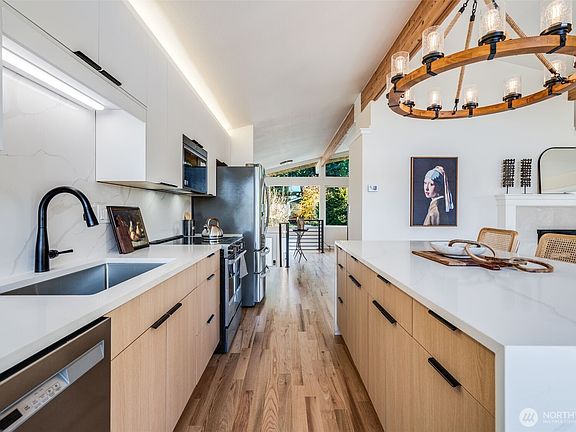 Beautifully renovated Richmond Beach home offering modern comfort and style! This spacious 4 Bed, 3 Bath residence features two full kitchens-ideal for multigenerational living or rental potential. Main level offers open concept living/dining, updated kitchen with quartz counters and SS appliances, plus abundant natural light. Lower level includes a full second kitchen, living area, and private entry. Enjoy a large fenced backyard, mature landscaping, and recent updates including new flooring, paint, and lighting. Conveniently located near top-rated Shoreline Schools, Richmond Beach Saltwater Park, shops, and future light rail.