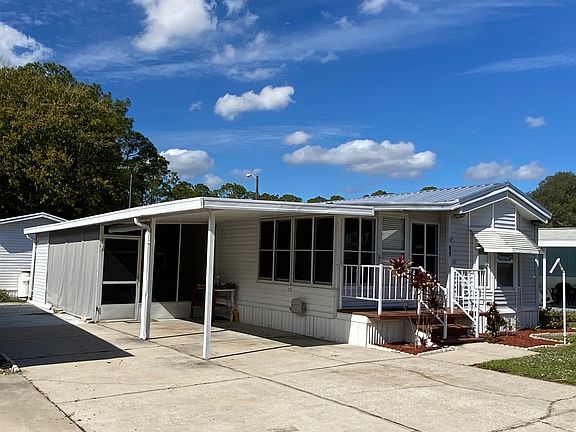 Nice cozy park model with a large kitchen with domed ceiling and has plenty of counter/cabinet space. This home has 2 sheds, one is a laundry room with new washer and dryer and the other is a workshop. Screen room is large enough to park a golf cart in and then some. Nice size carport, new metal roof, nicely landscaped yard, new a/c, new PEX piping. Located on a premium lot in Clerbrook Golf and RV Resort. Call me today to see this home.