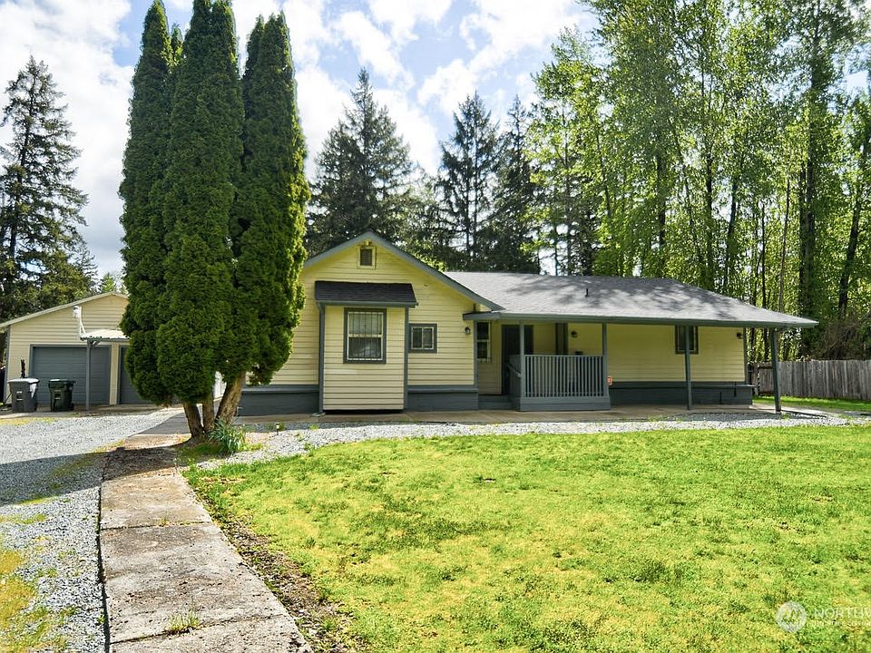 PRICE REDUCTION! Opportunity awaits for comfortable living in this well-maintained single owner rambler. Boasts beautiful archways, hardwood floor & newer laminate flooring throughout w/large dining rm. Spacious primary bedroom w/WIC & attached bathroom w/tile-step bathtub. Abundant storage space. Detached 2 car, 20'x21' garage w/shop space & covered parking. Fully fenced yard w/private gated driveway. Start a garden and plant fruit trees. Kick back and relax under the covered porch in front & in back. Roof is only 4 years old. Ample RV parking-Bring your toys & RV! Sits on a nice corner lot. Possibilities are endless. Great location in Graham & is close to all amenities & South Hill Mall. Close commute to JBLM, Puyallup, & Oly/Lacey.