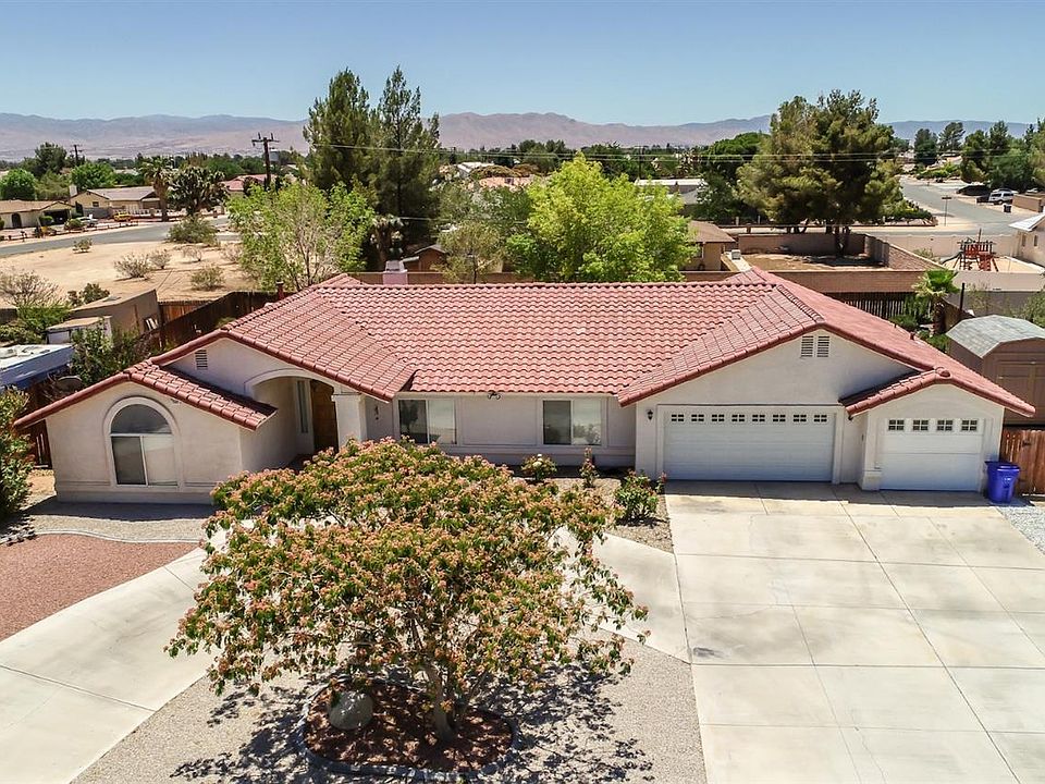 Beautiful Pool home in Apple Valley and is ready for summer. Featuring 2 master suites. Open floor plan with lots of windows plenty of light and vaulted ceilings. The family room offers a lovely fireplace that opens up to the large kitchen with a breakfast nook that over looks the pool area. Indoor laundry with plenty of cabinetry. Beautiful wood laminate flooring. Formal living room and formal dining for large family entertaining. Ceiling fans throughout help to keep you cool in the summer and circulate air on cool winter nights. The back yard has lots of concrete a covered patio and side yard with a shed for storage. Not to mention the 3 car garage. Truly this home has it all and is waiting for its new family.