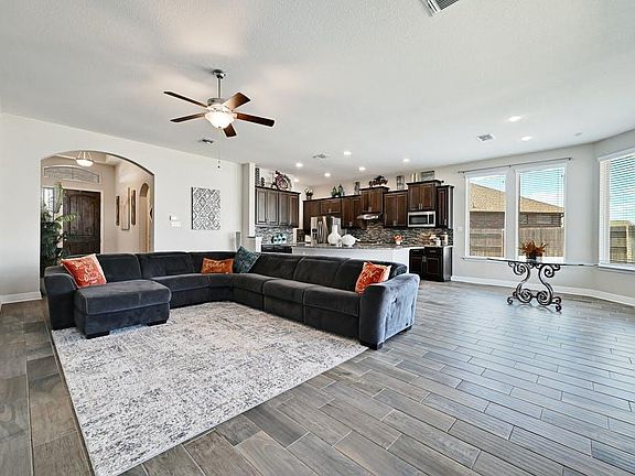 Nestled on a quiet cul-de-sac, this charming 1-story rental offers 3 bedrooms and 2 full baths with an open, inviting layout. The spacious living and dining areas flow seamlessly into a bright, oversized kitchen featuring a large center island, granite countertops, and plenty of cabinetry perfect for everyday living and entertaining. Stylish luxury wood-look tile floors run throughout the main living spaces, while the bedrooms feature durable luxury vinyl plank flooring for added comfort. The primary suite provides a relaxing retreat, two additional bedrooms offer flexibility for family and guests, and a large home office - perfect for those who work from home. The home sits on a huge yard, offering endless space for play, gatherings, or simply enjoying the outdoors. Just a short walk away, residents can take advantage of exceptional community amenities including a resort-style pool, splash pad, basketball court, sport court, playgrounds, and open fields. Located in a highly rated school district, this home combines comfort, convenience, and lifestyle in one desirable package. With its updated finishes, generous living space, and access to top-notch amenities, this property is a rare opportunity to rent a home that truly has it all.