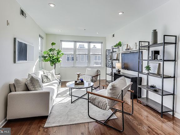 Welcome to Unit 412 at The Lincoln, a spacious and impeccably designed top-floor 2-bedroom, 2-bathroom condominium with over 1000 sq ft of living space. As you enter the sun-filled foyer, you'll be greeted by a generous kitchen featuring white cabinetry, ample counter space, gas cooking, and marble flooring. The kitchen seamlessly flows into the combined dining and living area, which boasts large windows that flood the space with natural light. On the right side of the unit, the primary bedroom offers ample room for a desk, sitting area, or exercise equipment. It includes multiple closets and a spacious en-suite bathroom with double sinks and a shower/tub combination. On the opposite side of the living room, you'll find another similarly spacious en-suite bedroom with multiple closets and a full bathroom with a shower that also has access to the main living area. This thoughtful floor plan is perfect for accommodating guests, roommates, family members or a home office. Additional features of this unit include extra closet space in the foyer area, an in-unit washer and dryer, customized black out shades in the bedrooms, recessed lighting and wood flooring throughout the dining, living and bedroom areas. The Lincoln is a full-service, pet-friendly building with a wealth of amenities, including a front desk concierge, fitness room, rooftop patio with grills, modern social room for entertaining, courtyard, and dog park. Enjoy city living at its finest with a prime location that eliminates the need for a car. You'll be within walking distance to the U Street-Cardozo Metro (green/yellow lines), parks, grocery stores, shops, and a wide array of restaurants. Love Where You Live!