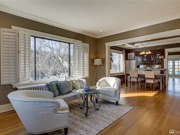 Great balance of Old World Charm & Updated Convenience! Sun-filled Sound View home w/ charm intact! Wonderful detailing- elegant antique crown moldings, box beamed ceiling & antique built-ins. Chef's kitchen w/ rich appointments opens to entertainment size deck w/ nice views of Sound & Olympics. Completely finished lower level- 2 bedrooms, rec rm, office, sitting rm & mud rm to yard. Quick stroll to Village shops & restaurants. Newer 2 car garage w/ storage- not included in square footage total!