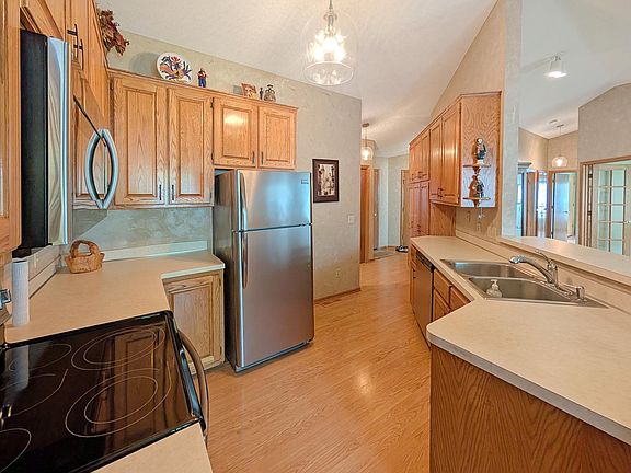 Welcome Home to this charming one-level townhome, designed for comfort and convenience with no stairs inside or out. The open floor plan features vaulted ceilings and a spacious peninsula kitchen with generous cabinetry and counter space, flowing seamlessly into the living and dining areas.