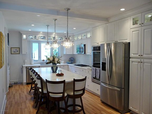 Large modern 3-4 BR home on corner lot in nice Dunmore neighborhood. LR-DR w/ HW, full wall FP, beamed ceiling, large ultra modern eat-in kitchen w/ Quartz counter, island, and all appliances. Large study off LR, MBR w/ large walk-in closet, cozy FR w/ wet bar, 2 modern baths, large deck, beautiful stained glass, O.S.P. for 2. This home really must be seen! Don't miss it!