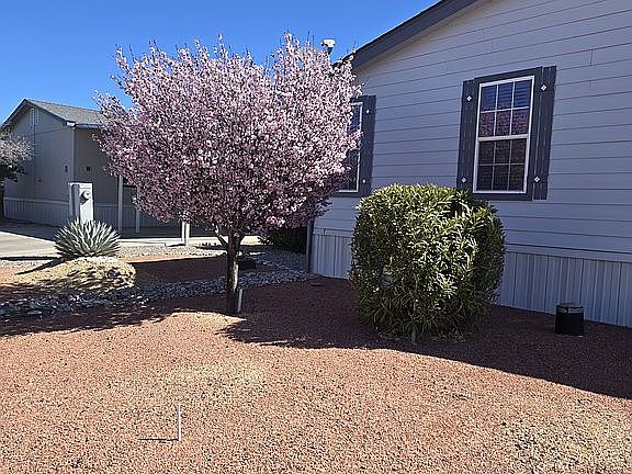 Beautiful 3 bedroom 2 bath, 1680 Sq. Ft home, situated on a conner lot in Amber Skies, a 55 plus private community. The home has had recent extensive renovations and upgrades in excess of $30,000.00. High end Smart appliances including Refrigerator, Range, Microwave, Dishwasher, Washer and Dryer. The HVAC, both inside and out, Premium vinal plank, wood look, flooring, Levolor blinds on all windows, Custom drapes throughout, crown molding, Hunter celing fans, RO warter system and freshley painted both, interior and exterior which is Hardie Plank Lap Siding. There is a large covered front porch with mountain views, a work shop, storge shed, and double carport. Amber Skies has a great club house, seasonal swimmimg pool and exercise room.Thre are many fun activities for residents. It's a great community. Motivated seller,