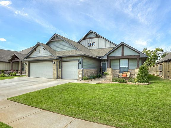 LIVE WELL in this custom crafted home, in the heart of the Yukon School District. This "BETTER THAN NEW" residence combines modern design with warm, functional living. LOCATION PERFECTION tucked away in Mar A Lago...HIGHLY DESIRABLE Yukon community. You will LOVE this picturesque "nature park" like setting. Enjoy spotting deer grazing and other wildlife. This home backs up to a scenic tree line offering a peaceful backdrop and added privacy. From the moment you arrive, you’ll notice the clean lines, attention to detail in wood accents and custom fixtures. Step inside and be WOWED by the WARM and FUNCTIONAL layout IDEAL for ENTERTAINING. HIGH STYLE "wood-look" tile flooring flows throughout the main living space. Natural light floods the home, highlighting the stunning living and kitchen area built for both everyday comfort and entertaining. EXPANSIVE living area with STATEMENT wood accent gas fireplace. LOVE to cook? You will enjoy every ammentie in the kitchen with island seating for 4, Stainless Appliances including gas range, farm sink, work station/coffee bar, and custom counters and cabinetry. Primary retreat is the perfect place to unwind. Spacious and private. Primary bath with LARGE walk-in closet, glass enclosed shower, soaker tub, and dual sink vanitiy. Built in storage bench with cubbies and hanging space. Utility room with workspace and storage. This home is as functional as it is beautiful. Sprinkler system installed to enjoy the quiet green space. Backyard faces the greenbelt and features a large covered and open patio with a firepit. IDEAL setting to enjoy fall evenings. Friendly community just minutes from the Kilpatrick Turnpike and I-40, quick access to shopping, dining, and all that Yukon and the OKC metro have to offer. It embodies transitional luxury, thoughtful design, and a peaceful natural setting—all in one. Don’t miss your chance to call 2001 Aminas Way your DREAM HOME—SENSE OF PEACE FOUND HERE...schedule your showing today!
