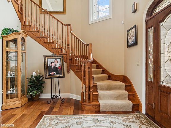 Exceptional All-Brick Executive Home on 1.2 Acres with Walkout Basement and Over 200K in Updates! Welcome to 2001 Anthony Lane-an elegant and spacious 5-bedroom, 4.5-bath, three-story brick home boasting over 5,000 sq ft of refined living space. Originally built in 2008 and meticulously maintained, this residence offers timeless craftsmanship paired with thoughtful, modern upgrades throughout. Situated on a professionally landscaped 1.02-acre lot, the home stuns with curb appeal and privacy. The landscape redesign features an artist-drawn blueprint with curated plant placement, full-yard sod, 26-zone irrigation system, privacy-enhancing evergreens, dramatic exterior lighting, and upgraded stonework flanking the driveway. An extended paver patio with a built-in fire pit, LED-lit stairs, and two expansive composite decks provide unbeatable outdoor living and entertaining spaces. Inside, you're welcomed by natural Brazilian Cherry hardwood and marble flooring, arched entryways, soaring ceilings, and dramatic windows that flood the home with natural light. The gourmet kitchen features natural cherry cabinetry, granite countertops, and Bosc & Dacor appliances featuring a beautiful butler pantry. The two-story see-through gas fireplace connects the living and family rooms, creating warmth and grandeur. Main level - includes a spacious primary suite with dual walk-in closets and a luxurious en-suite bath. Upstairs includes four bedrooms (all with walk in closets), Jack & Jill bathrooms and a huge bonus room. The fully finished walkout lower level is perfect for entertaining or multi-generational living, featuring a second full kitchen with stone accents, fireplace with surround sound in ceiling speakers, ambient lighting, a full bath, and remodeled laundry room. Major mechanicals have been updated: Trane high-efficiency HVAC with dual furnaces and central air conditioning units (2021), dual water heaters (2022-2025), water reserve tank (2022), roof and gutters (2023) with a fully transferable 30-year warranty, plus updated faucets and garbage disposal. All windows are energy-efficient vinyl and aluminum framed. This is a rare opportunity to own a luxurious, turnkey home that combines architectural beauty, comfort, and peace of mind with long-term mechanical investments already in place.
