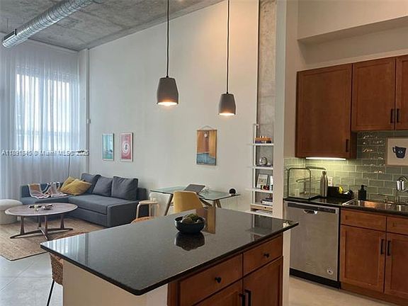 Beautifully furnished 1-bedroom, 1-bath condo ready for immediate move-in! This stylish residence features 14-foot ceilings, granite countertops, a spacious matching kitchen island, and newer appliances. Enjoy easy street-level access for ultimate convenience. Located in a modern, pet-friendly Bayfront building in desirable Edgewater, offering top-notch amenities including a gym, pool, and 24/7 front desk. Prime location within walking distance to Margaret Pace Park, great restaurants, shops, Perez Art Museum, and Frost Science Museum. WiFi and alarm system included. Total move-in cost: $8,850 (first month + two security deposits). Don't miss this opportunity!