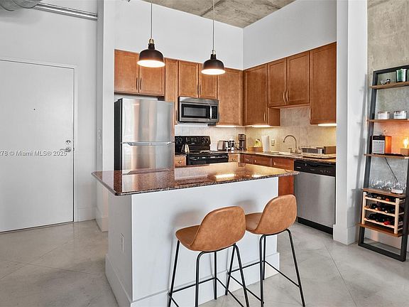 This spacious 1-bed, 1-bath loft apartment features soaring 11-foot ceilings, exposed ductwork & concrete ceilings. Delight in the open-concept kitchen w/ granite countertops & stainless steel appliances. Enjoy ample storage w/ custom built-ins & a thoughtfully designed layout that maximizes every square foot. Stackable washer and dryer included in-unit. Cite is located across from Margaret Pace Park in vibrant Edgewater just blocks from Publix, Whole Foods, the Arts & Entertainment District, Perez Art Museum, Miami Worldcenter, and more. This pet-friendly Bayfront building offers valet service, concierge, a fitness center, resort-style pool, spa, and clubroom. One assigned parking space is included. The Trolley and Metromover are just a short distance from home.