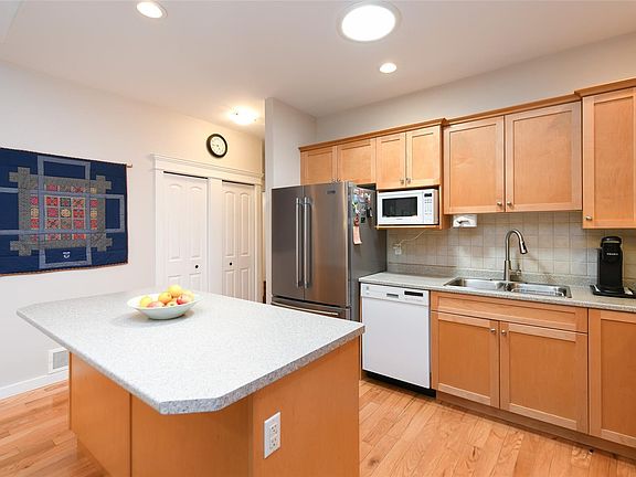 Vaulted ceilingHardwood and tile flooringHeat pumpPrivate and tranquil patioWalk-in closetSingle garage