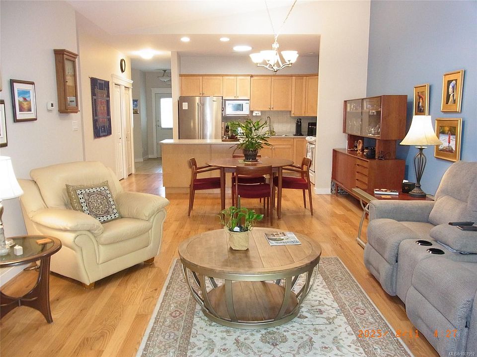 OPEN HOUSE Saturday Oct 4th 11-1pm 'The Woodlands' - one of the most preferred strata patio-home developments in the Comox Valley is located on the Courtenay/Comox boundary with only minutes away from shopping, walking trails, cafe's, pubs and parks. This one level beautifully maintained home has 3 generous size bedrooms, 5-piece ensuite, walk-in closet in the primary bedroom, large laundry room and single garage. Features include 9' ceilings with a vaulted ceiling in the living room, hardwood and tile flooring, heat pump. A very private and tranquil patio backing onto nature's greenspace. Your four-legged furry family members are welcome too!