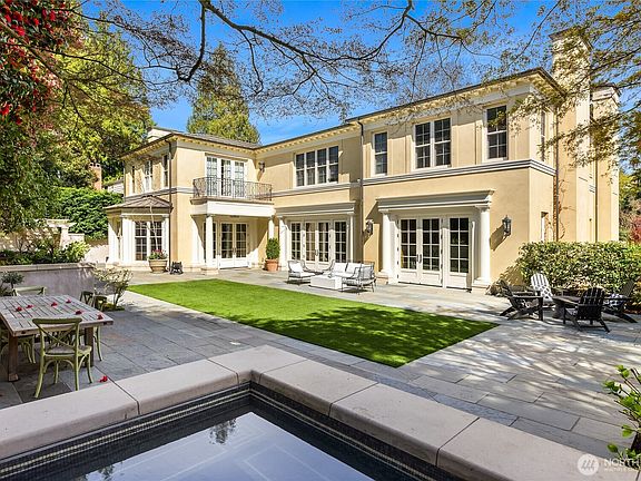 Presenting the Modern Georgian in Broadmoor, Seattle's only gated community! Majestically sited on a sprawling lot (room for a pool/pickleball court!) which is completely screened from your neighbors for the ultimate in privacy. Originally built in 2009 by the esteemed duo of Toth Construction & Stuart Silk, the quality (10-foot ceilings, deep crown moldings, perfectly scaled rooms & killer indoor-outdoor flow) is unrivaled. The main floor: a huge kitchen/butler's pantry/family room, formal dining room, living room & office all open to the garden. Four en-suite bedrooms upstairs. Paneled LL rec-room, wine cellar, workout room, guest quarters (w/an outside entrance, its own kitchen & private courtyard). 4-car garage & an elevator! WOWZA!