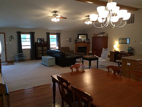 You don't want to miss this gorgeous home w/7.67 acres - love living in the country while only minutes from town and amenities. The open theme allows you to enjoy the beauty of the cathedral ceilings while relaxing in the large living room with gas fireplace. Any cook will enjoy the solid maple cabinets, island w/seating and a pantry that is a must see! With hardwood floors in the kitchen and dining area, where there are french doors leading out to the covered patio in back. Master bedroom w/ensuite bath, has double closets and large walk-in closet. 3 more bedrooms, 1 with walk-in closet. Fourth bedroom could be used as den/office. Large front porch is a great place to sit and relax at the end of the day. Large laundry room w/large closet, you are going to excited with all the storage space. Insulated 6x8 dog house your furry friend will love. 4 block lighted crawl space is encapsulated w/moisture barrier. Large yard with landscaping.