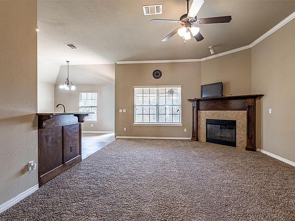 Perfect home for a new family! 3 bed,2 bath brick home in a peaceful neighborhood. Modified Graeson floor plan with additional 80 sf in living room! 3 bedroom, 2 bathrooms, living room & family room, formal dining & breakfast nook! Granite countertops, under cabinet lighting, stainless steel appliances, 10 ft ceilings throughout. Backs up to a greenbelt. Community connected to Lions Park. Walking trails, playground, dog park, and fishing pond; Sutton Wilderness Park, Griffin Memorial Park, & Norman Recreation Center.